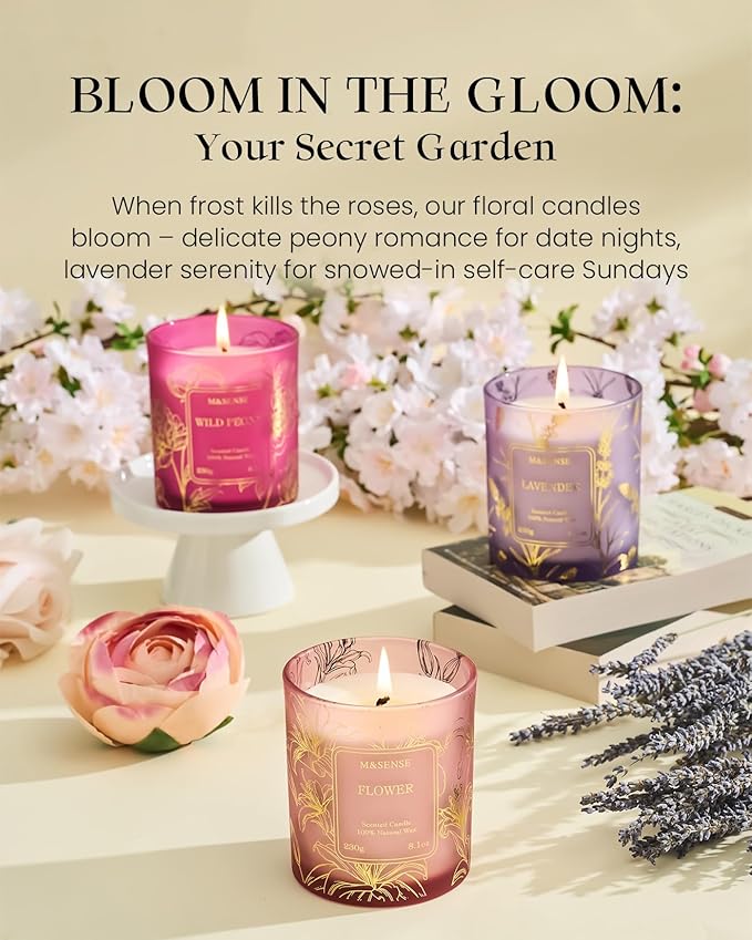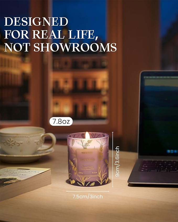 M&SENSE Lavender Candles,Vegan Soy,8.1oz 42-Hour Long Lasting Burning Time,Subtle Scented Candles for Relaxing Bathtub Aromatherapy Calming Sleep,Fancy Home Gifts for Women & Men