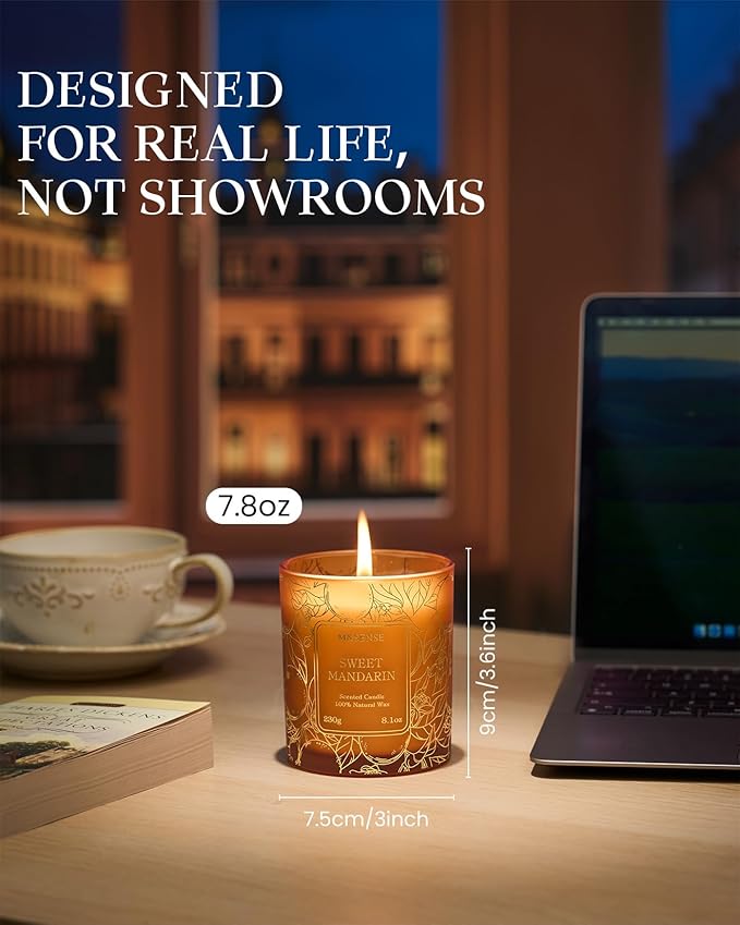 M&SENSE Citrus Scented Soy Candles,Vegan,No Toxin,8.1oz 42-Hour Slow Burning Time,Sweet Mandarin Heavy Scented Candle,Air Purifying Aromatherapy Office Home Fragrance