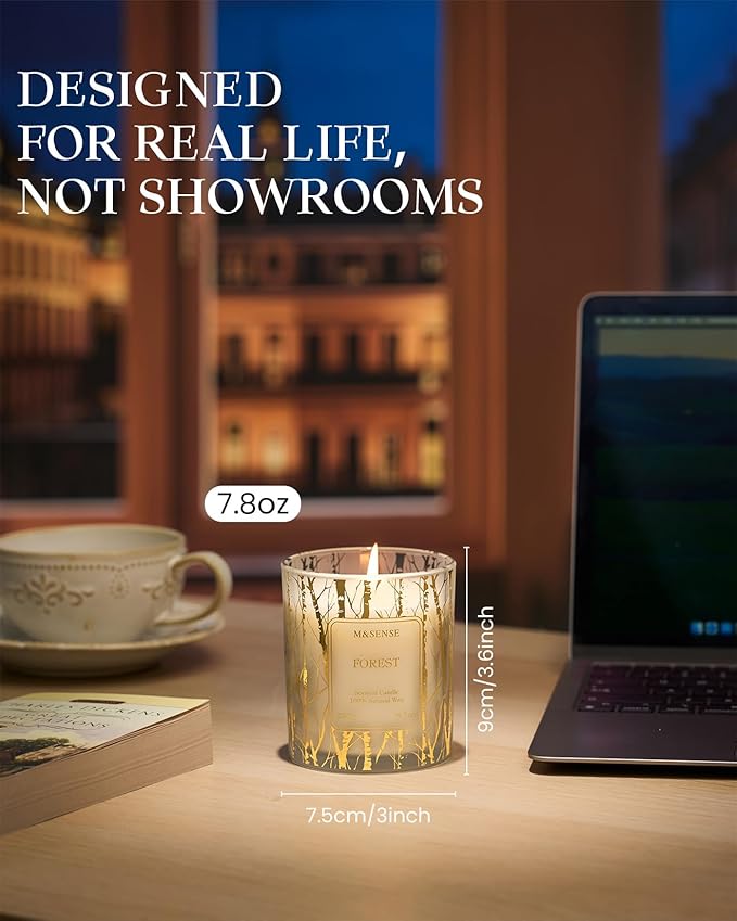 M&SENSE Forest Scented Vegan Soy Candles,8.1oz 42-Hour Slow Burning Time,No Toxin Naturally Scented Candles for Fall Winter Bathtub Aromatherapy Calming Home Fragrance,Fancy Gifts for Women & Men