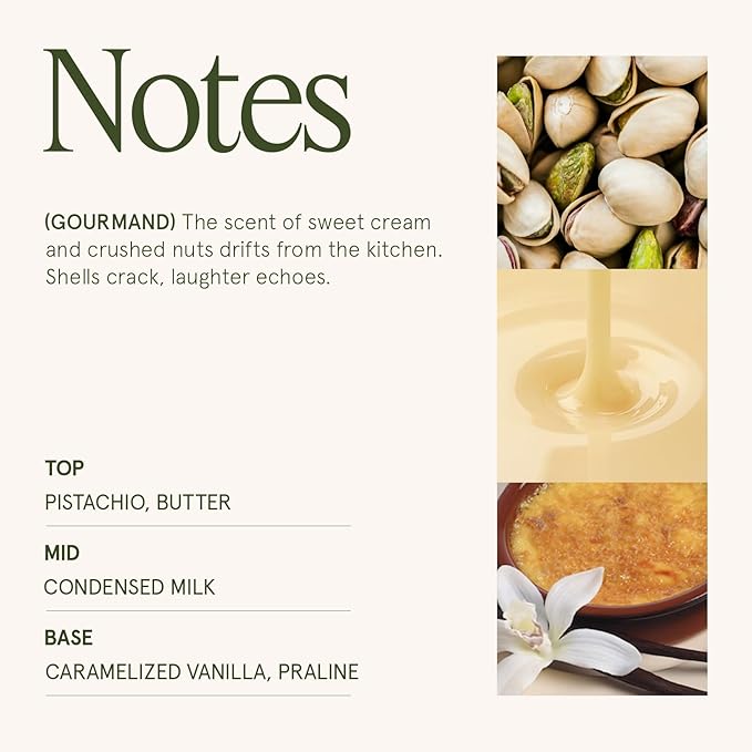 • Pistachio Macaron: A delightful blend of pistachio, orange blossom, and butter, with a heart of condensed milk, muguet, and violet, finished with a base of caramelized vanilla, tonka, and praline—perfect for sweet-toothed candle lovers.
