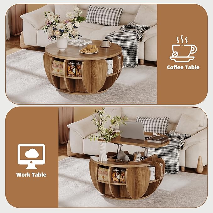• 【Sturdy and Stable】Crafted from high quality sturdy MDF panels , our wooden coffee table offers exceptional durability and stability. The lift top coffee table features a lifting bracket that adopts hydraulic support rod with slow rebound, ensuring a stable structure and eliminating any worries of the desktop shaking due to the rapid rebound of the desktop during use. And It's high sturdy base also enhances stability and ensures a wobble-free experience. Whether you're enjoying a meal or working on tasks, this round farmhouse coffee table perfectly blends strength and functionality, making it an excellent addition to any home.