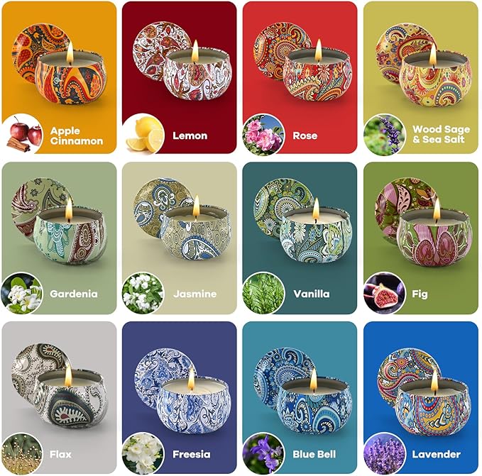 • Various Scented Candles Available: Contains 12 Scents: Flax, Jasmine, Vanilla, Gardenia, Freesia, Bluebell, Rose, Lavender, Apple Cinnamon, Lemon, Fig, Wood Sage&Sea Salt, Whether you're looking for something bold and masculine or soft and comforting, there's a fragrance waiting to be discovered