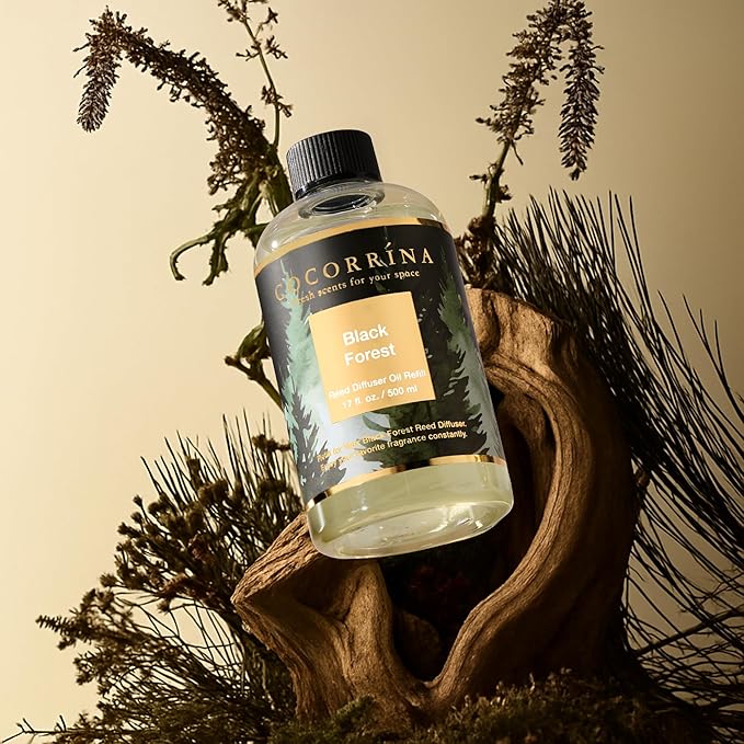Cocorrína Reed Diffuser Refill Black Forest 17oz (500ml) with 8 Sticks - Premium Long-Lasting Essential Oil, Home Fragrance for Bedroom, Bathroom Home Decor