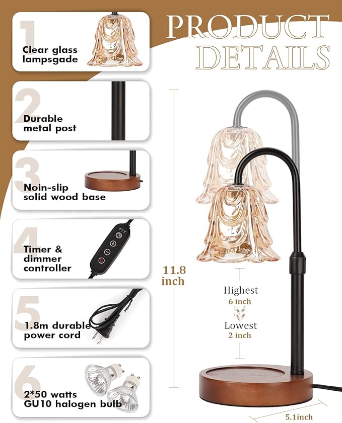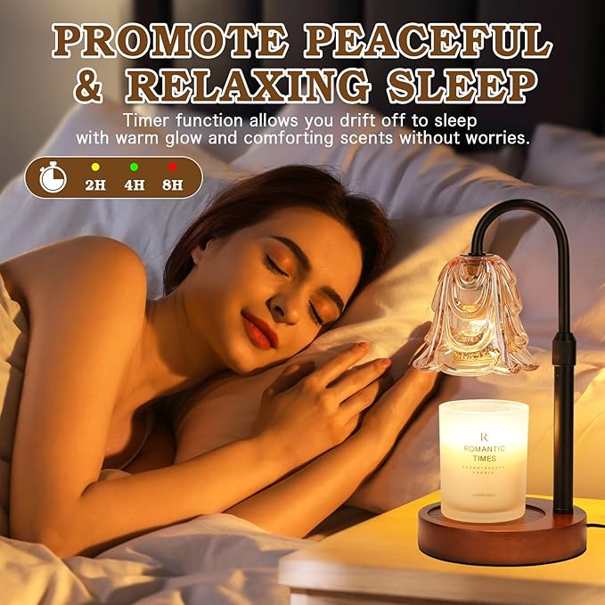 • Timer&Dimmable Controller: This candle burner lamp with timer is dimmable for meeting different ambiance needs. And it has 2 4 8 hours shut-off function. The brighter you set, the faster jar candles melts. It is a beautiful candle melter lamp