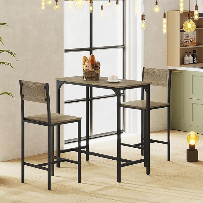 • [Chic Industrial Style]: Elevate your living space with the chic industrial appeal of this bar table and chairs set. It features a sleek and smooth finish that adds a touch of sophistication to any room as well as simplifies the maintenance process, allowing you to effortlessly keep your set looking pristine and elegant.