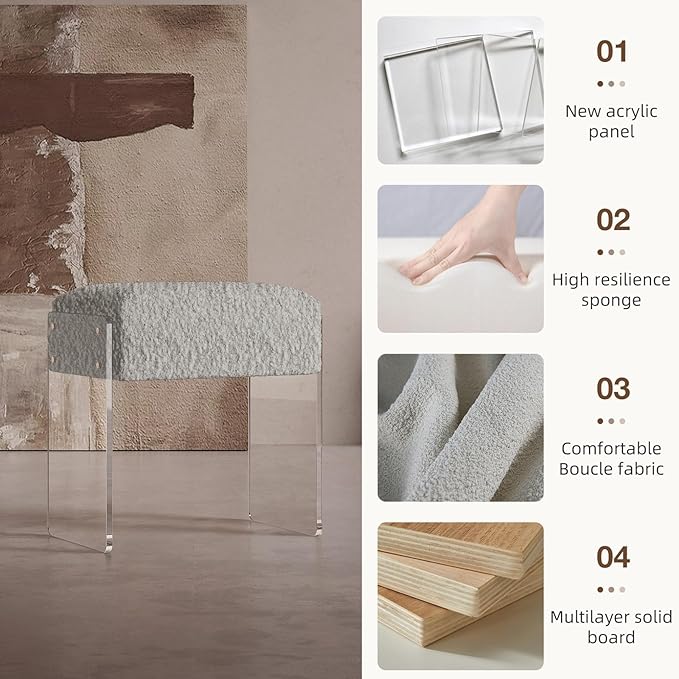 • Acrylic Feet: The stool features acrylic feet that are non-slip and prevent scratches on your floor, making it suitable for various surfaces such as laminate, wooden, and tile floors.