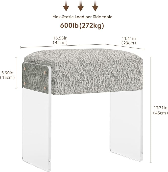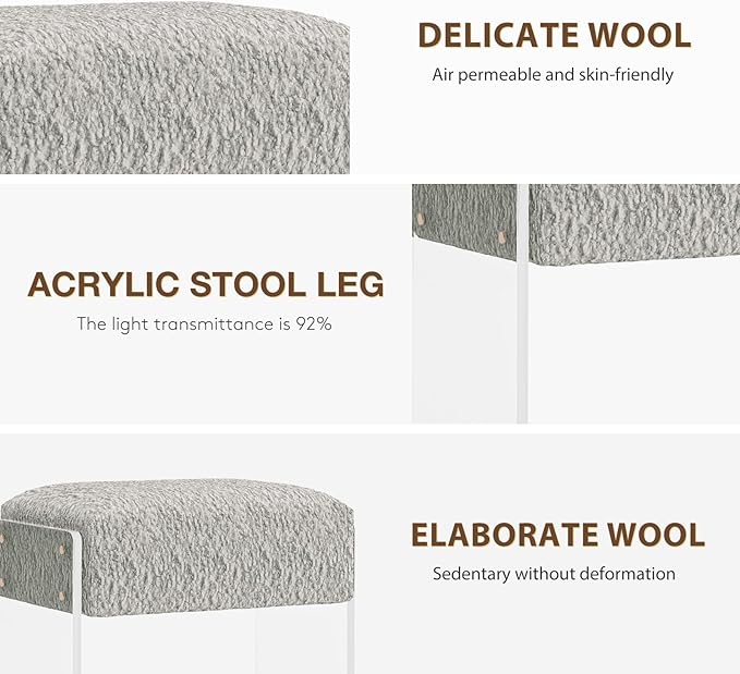 Soft Fluffy Stool, Modern Acrylic Footstool with Upholstered Seat, Fluffy Stool for Living Room Bedroom (Grey)