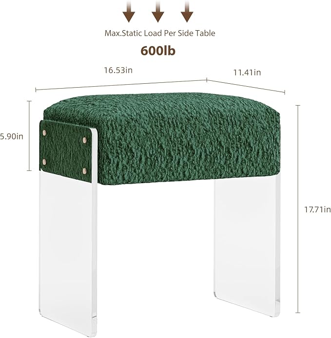 Soft Fluffy Stool, Modern Acrylic Footstool with Upholstered Seat, Fluffy Stool for Living Room Bedroom (Green)