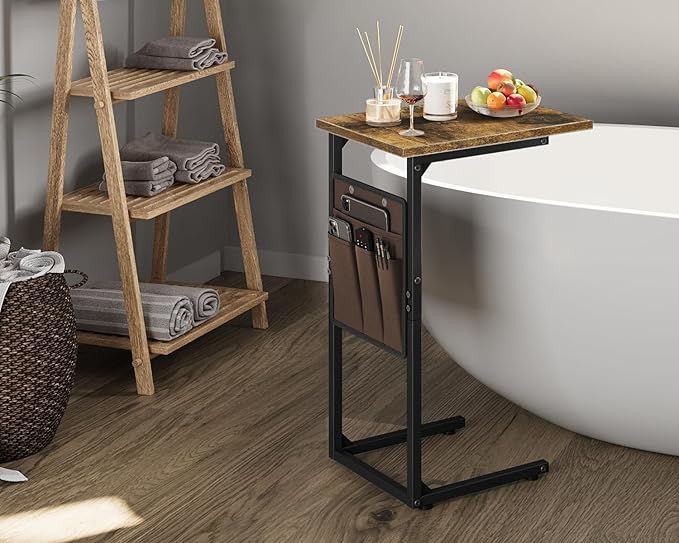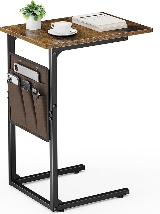 • [C Shaped Design]: The Storage Bag are designed on the left side, easier to use. Hug the side of your sofa or recliner with this C table, so you can enjoy drinks or works conveniently.