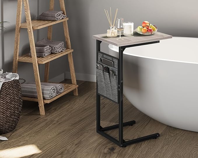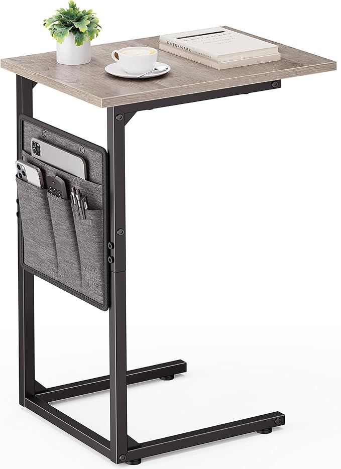 • [C Shaped Design]: The Storage Bag are designed on the left side, easier to use. Hug the side of your sofa or recliner with this C table, so you can enjoy drinks or works conveniently.