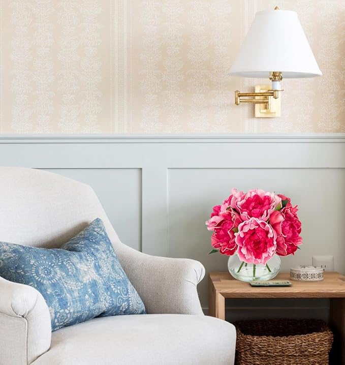 • 💐【Realistic & Elegant】Peonies artificial flowers with glass vase suits look so beautiful, unique craft design, brings different visual enjoyment to your home, create a romantic atmosphere, make you happy every day. Faux water on the vase adds to the pulchritude and realism. More realistic because of the details!