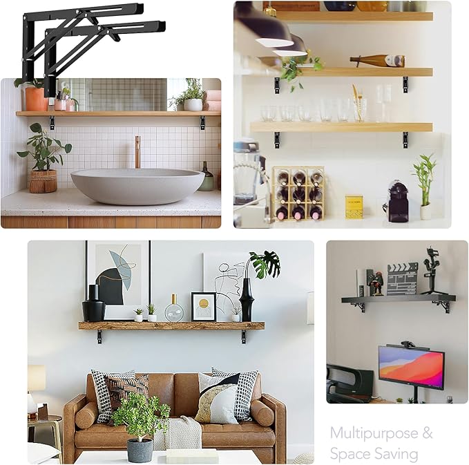 • Space-Saving & Foldable: Featuring a collapsible design, these brackets lock securely at 90 degrees and can be easily folded with a simple press of the release arm. Ideal for small spaces, they meet a variety of storage and organization needs without sacrificing functionality