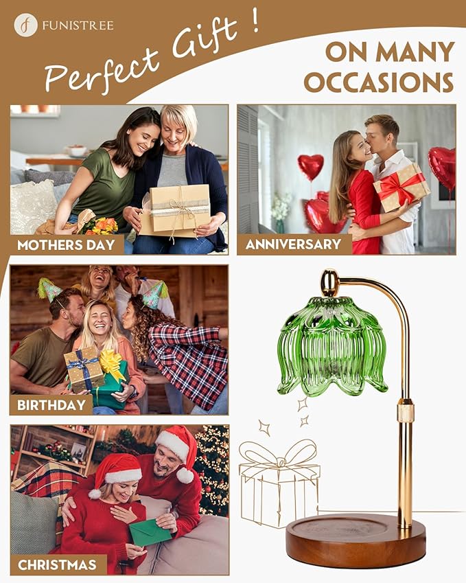 • The Perfect Gift for Every Occasion: Featuring a lotus inspired design, this candle warmer adds a touch of charm and coziness to any room, seamlessly into any space, living room, bedroom, or bathroom. This candle heater lamp is a perfect christmas gifts, Mother's Day, housewarming, birthday gifts for mom, women, best friends girlfriend gifts Idea
