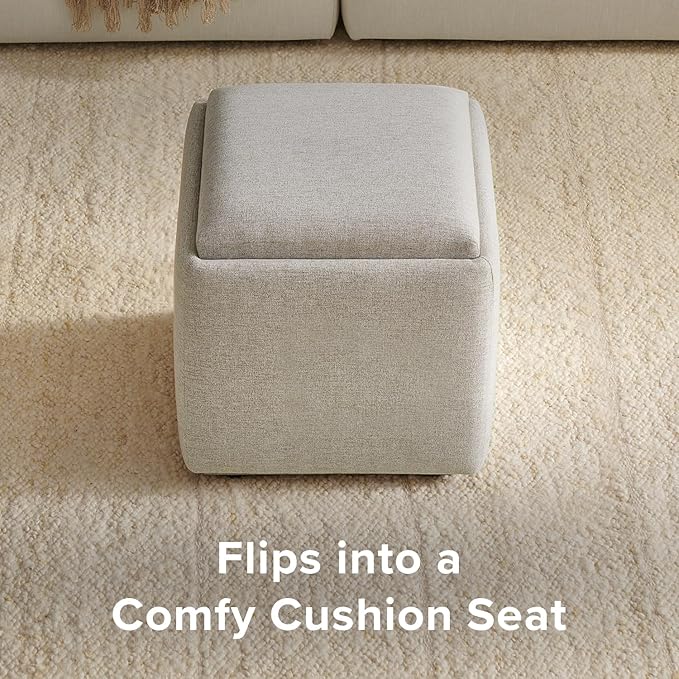 mopio Levi Storage Ottoman with Reversible Tray, Modern Square Chest Coffee Table, Upholstered Cube Sitting Foot Stools Ottoman for Living Room, Bedroom, Entryway (Fabric, Light Gray)
