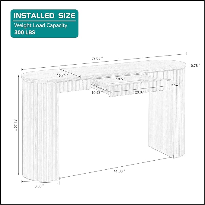 kevinplus 59.05'' Modern Console Table Sofa Table with Drawer Storage for Entryway Living Room, Sturdy Construction, Curved Style, Black