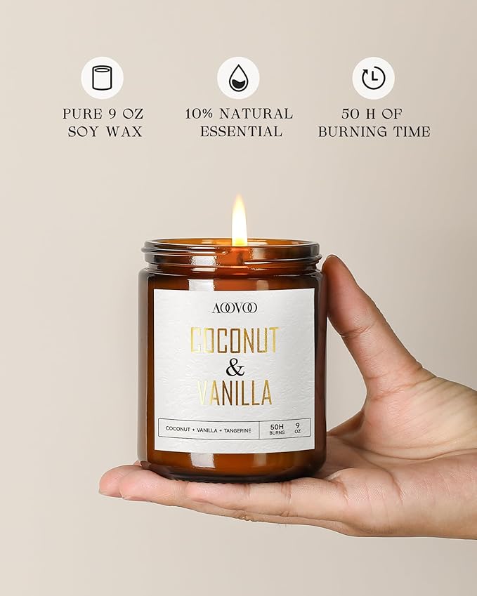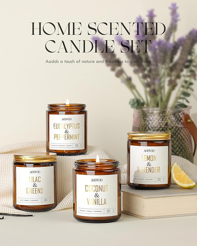 • 4 Pc Scented Candles: Indulge in the sweet Coconut & Vanilla, the revitalizing Eucalyptus & Mint, the calming Lemon & Lavender, and the fresh Lilac & Greens found in our candles. With aoovoo's carefully curated scents, you're in for a one-of-a-kind aromatherapy journey.