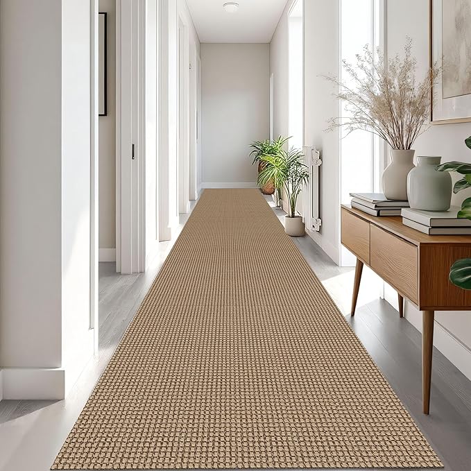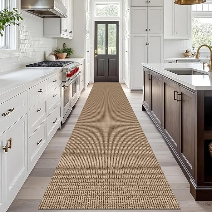 IOHOUZE Washable Exrea Long Hallway Runner Rug 3x18 Non Slip Rubber Backed Kitchen Runner Entryway Runner Indoor, Woven Rugs Floor Carpet for Kitchen Hall Entryway Stair, Orange/Tan/Brown