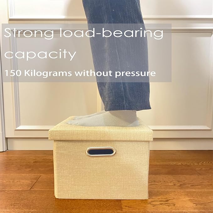 • Fashionable and Comfortable: The folding storage stool is designed with a focus on aesthetics and a stylish appearance. It can be used as a decoration to add a touch of brightness to the living room. Externally wrapped in linen and filled with high elasticity sponge pads for a more comfortable sitting experience