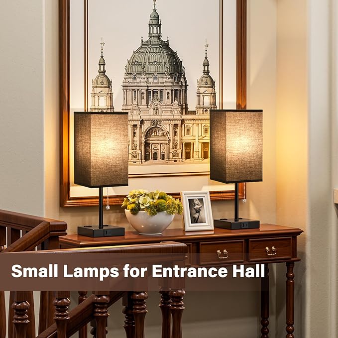 • 4. Plug and Play Chic Bedroom Lamps Set - Package included 2pcs non-flicker FREE E26 led light bulb (worth $15), 2pcs install-free square cream flaxen fabric shade, 2pcs stable lamp body and classic black metal base. Put all together for a minimalism classic lamp is really perfect to decorate anywhere of your house. An ideal tableside lamp for bedroom, guest room, living room, study room, kids room, college dorm room for girls and boys, office room, desk, etc.
