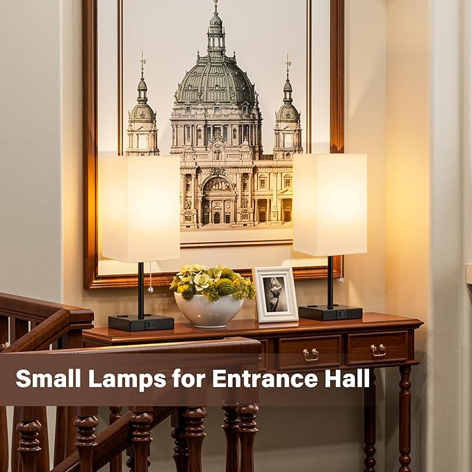 • 4. Plug and Play Chic Bedroom Lamps Set - Package included 2pcs non-flicker FREE E26 led light bulb (worth $15), 2pcs install-free square cream flaxen fabric shade, 2pcs stable lamp body and classic black metal base. Put all together for a minimalism classic lamp is really perfect to decorate anywhere of your house. An ideal tableside lamp for bedroom, guest room, living room, study room, kids room, college dorm room for girls and boys, office room, desk, etc.