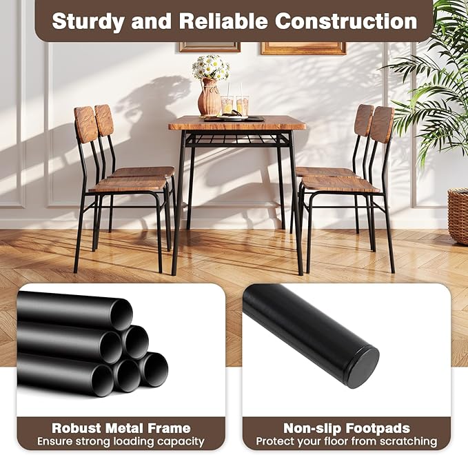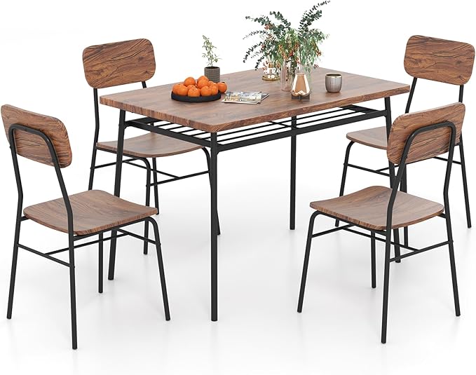 Tangkula Dining Table Set for 4,Kitchen Table & Chair Set w/Storage Rack, Metal Frame, Space-Saving Dinette Furniture Set for Breakfast Nook, Dining Room, Small Places