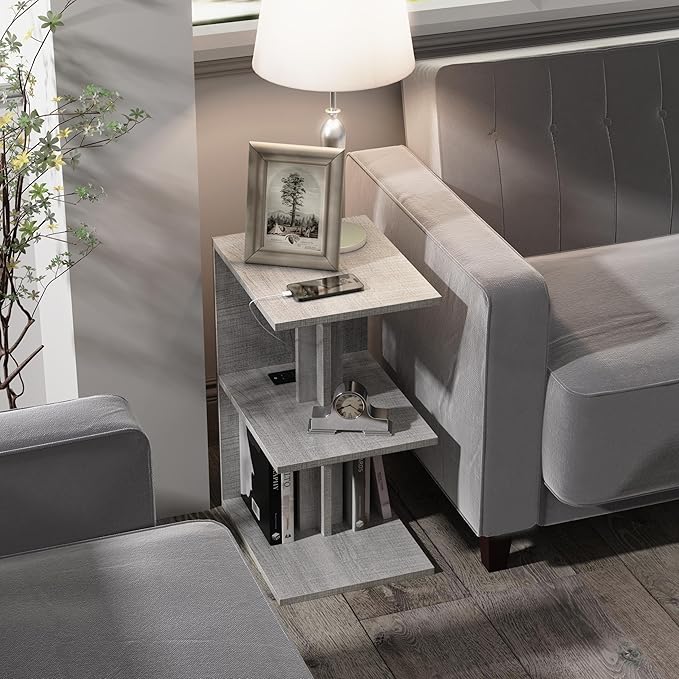 • Multipurpose End Table: If you need a spacious storage shelf in living room or bedroom, this side table with 3 open shelves is absolutely to taste whether it is used as a nightstand with charging function, a coffee stand to serve friends or a phone table during work, blending well in any scenarios like living room, bedroom, home office, apartment etc.