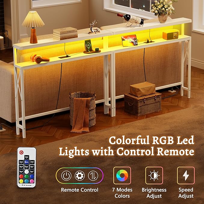 • 【Functional Charging Station】Our narrow sofa table comes equipped with 1 standard 120VAC outlets, 2 USB ports, and 59" long power cord. Perfect for charging multiple devices simultaneously, such as phones, laptops, tablets, and more.