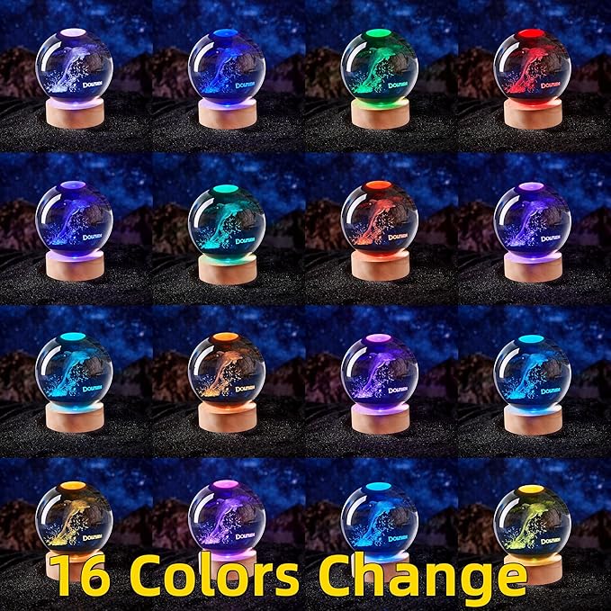 • ▶【16 Colors Change & Multiple Lighting Modes】Our 3D dolphin Crystal Ball Lamp have 16 colors and 4 modes. You can use the remote control to choose the color of your favorite lights and adjust the intensity of the lights.Flash, strobe, fade and smooth four modes,can also always light a color, soft and not glare, protect your eyes.