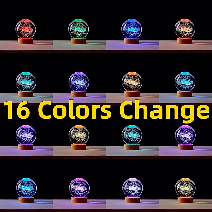 • ▶【16 Colors Change & Multiple Lighting Modes】Our 3D Solar System Crystal Ball Lamp have 16 colors and 4 modes. You can use the remote control to choose the color of your favorite lights and adjust the intensity of the lights.Flash, strobe, fade and smooth four modes,can also always light a color, soft and not glare, protect your eyes.