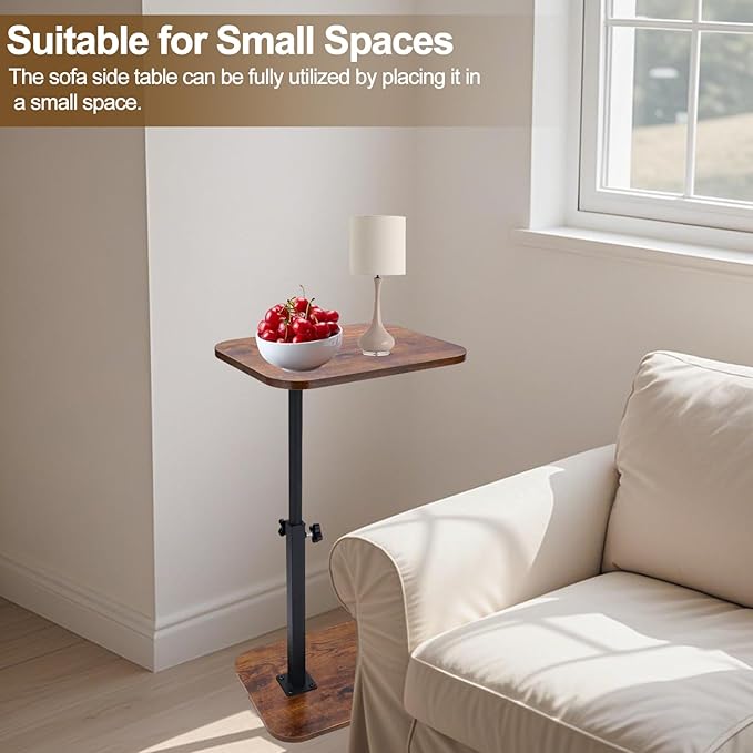 C Shaped End Table for Couch, 360° Swivel Height Adjustable TV Tray for Livingroom,Bedroom,Study and Small Spaces(Vintage Brown)