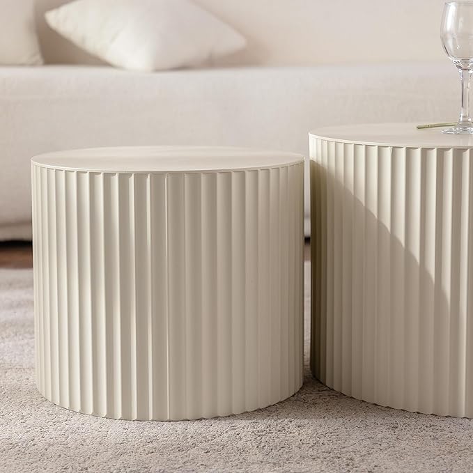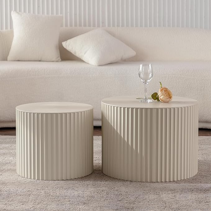 • ✨【Multifunctional Use】With pair the 2 round nesting coffee table together, you can get a large available space to eat, play or place necessities. With use fluted coffee table separately, you can get a bedside table in the bedroom, a sofa table in the living room, or a shoe changing stool in the entryway at the same time