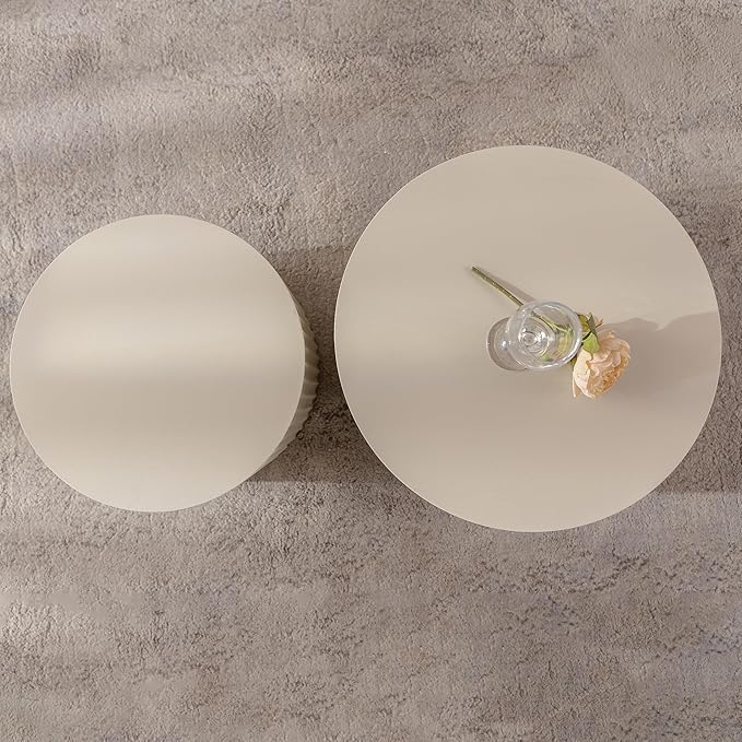 KEVINSPACE Nesting Coffee Table Set of 2 Circle CoffeeTable Modern NestingTables for Living Room Round Fluted Wooden CoffeeTabl No Need Assembly for Bedroom Balcony Lounge 33.86" Beige