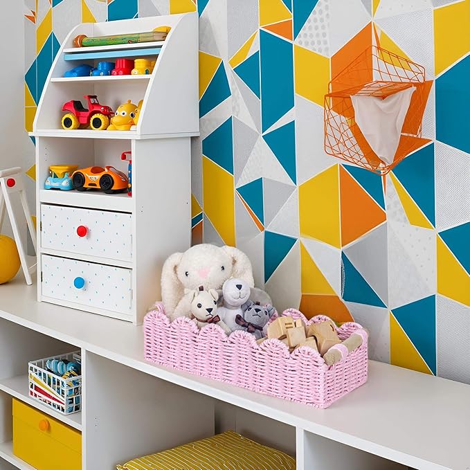• SCALLOPED DESIGN:This shelves storage basket features a scalloped-shaped top.Both storage and decoration, also perfect as a empty gift basket