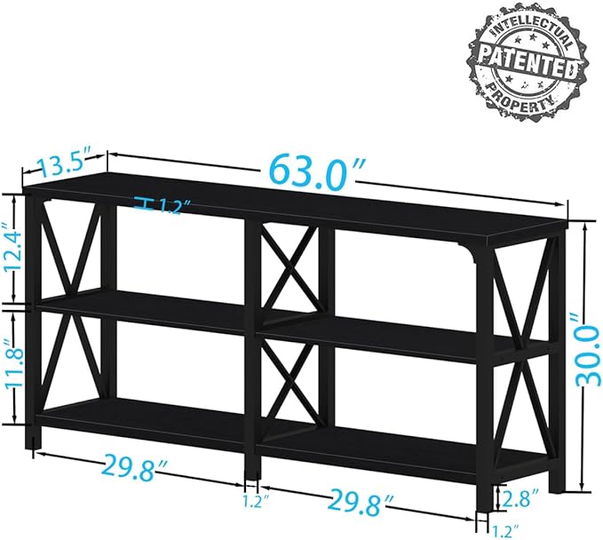 IBF Black Console Table, Modern Industrial Sofa Table with 3 Tier Storage Shelves, Farmhouse Wooden Metal Entryway Table for Living Room, Hallway, or Foyer, Black Oak, 63 Inch