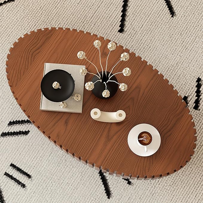 • 【Modern Coffee Table】The table is described as having a "modern" design,and aOval the solid wood relief,surface with wood color/dark brown/black ash grain.This can complement a wide range of interior design styles.
