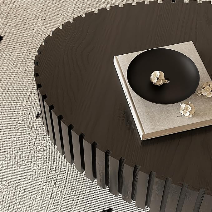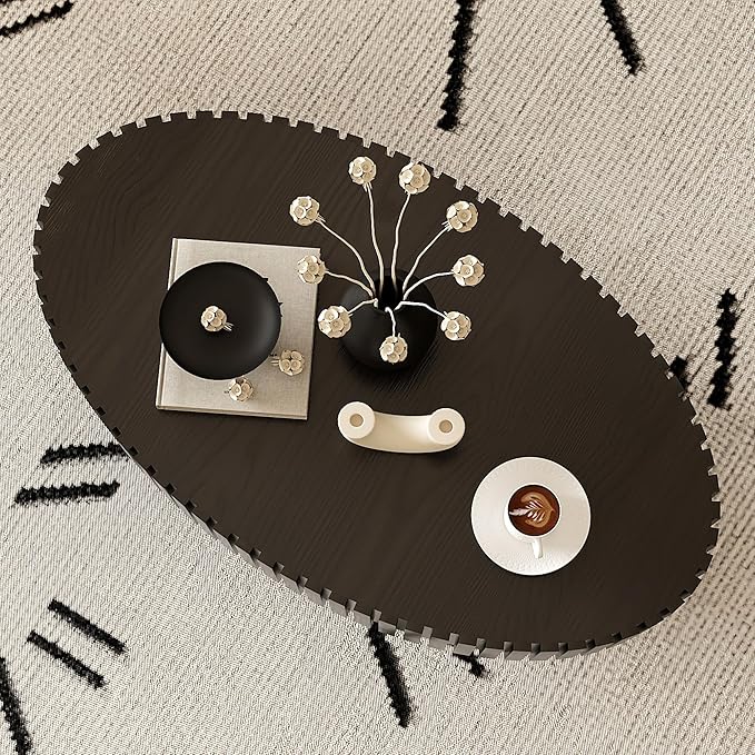 • 【Modern Coffee Table】The table is described as having a "modern" design,and aOval the solid wood relief,surface with wood color/dark brown/black ash grain.This can complement a wide range of interior design styles.