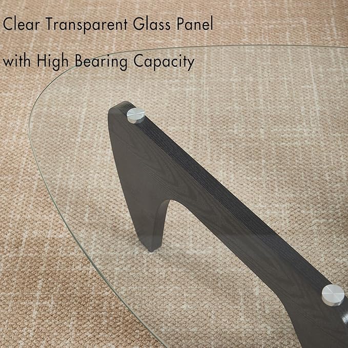 • Abstract Contemporary Style: This funky clear glass top coffee table with black wood base has a minimalist smooth line modeling treatment fills your home with the finishing touch, adding a sleek, modern feel at the first glance