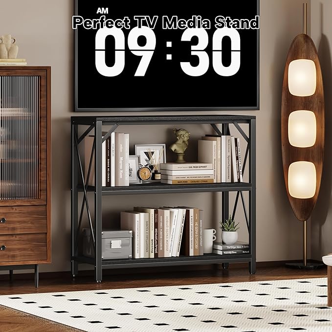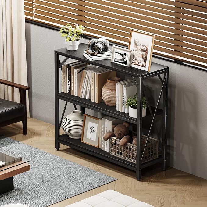 Homeiju Console Table 31.5" Width, 3-Tier Entryway Table with Storage, Industrial Sofa Table with Open Shelves, Foyer Tables for Entryway, Hallway, Kitchen, Living Room and Bedroom, Black