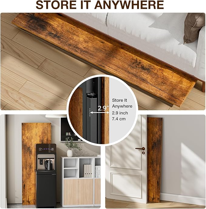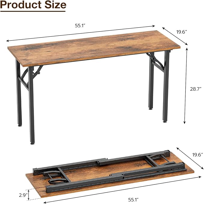 • 👍𝗖𝗢𝗠𝗣𝗔𝗖𝗧 𝗔𝗡𝗗 𝗘𝗔𝗦𝗬 𝗧𝗢 𝗦𝗧𝗢𝗥𝗘 — When folded, this mini desk measures just 55.1" L x 19.6" W x 2.9" H. The small folding table design allows it to fit seamlessly behind doors, under beds, beside fridges, or in any other tight space, making it a great small computer desk for small spaces while keeping your room organized.