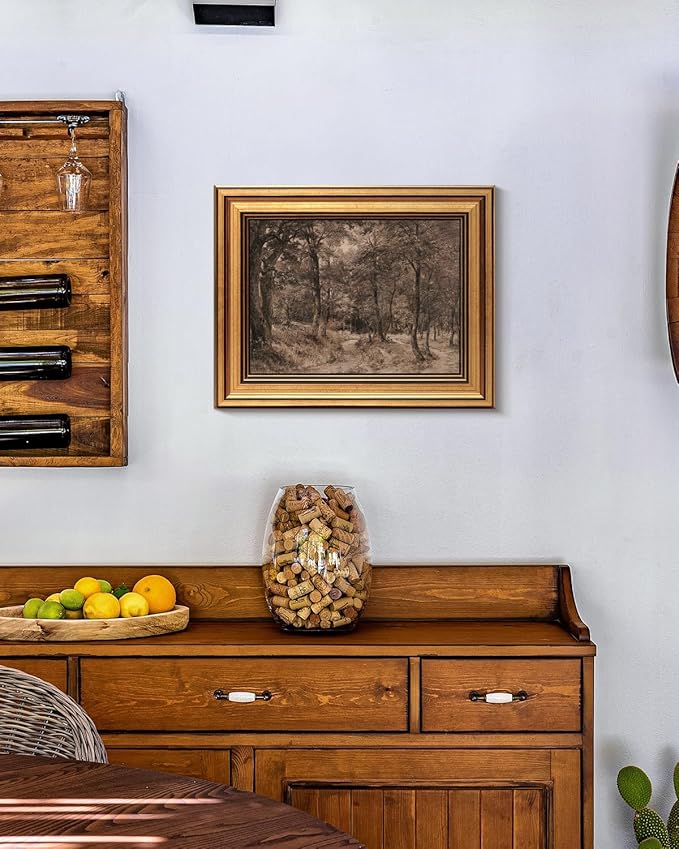 HUARCEY Gold Framed Vintage Wall Art for Living Room Nature Painting Prints Shelf Decor for Kitchen Aesthetic Bedroom Wall Art Gifts Charcoal Landscape Home Decor Farmhouse Path Forest Canvas Artwork
