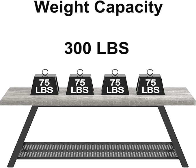 • Vintage Style Meets Industrial Edge: Featuring a light grey wood grain surface and black powder-coated metal legs, this rectangular coffee table blends modern, industrial, and retro charm into any living room, lounge, or office