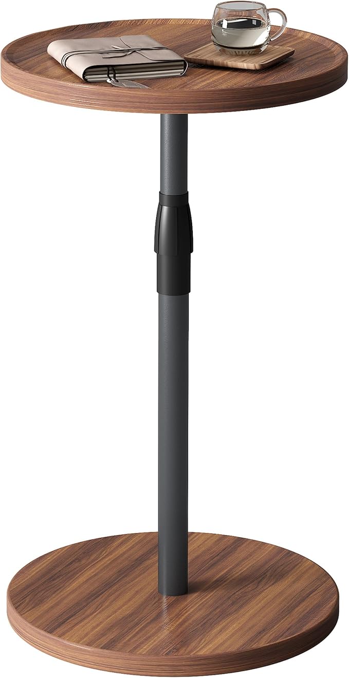 Adjustable End Table, Small Round Side Table, Drink Table for Small Spaces, Pedestal Nightstand for Living Room, Bedroom, Sofa Couch, Brown ET-010BR