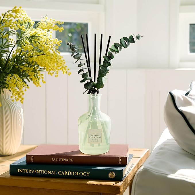 • Complete set: A bottle of 6.76 oz high quality essential oil blend, 8 reed sticks, 2 dried eucalyptus branches (please note that slight leaf detachment may occur during packaging or transit, which is normal), all beautifully presented in a gift-ready box