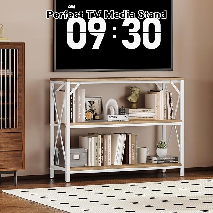 Homeiju Entry Table 40" Width, 3-Tier Entryway Table with Storage, Industrial Sofa Table with Open Shelves, Foyer Tables for Entryway, Hallway, Kitchen, Living Room and Bedroom, Light Coffee