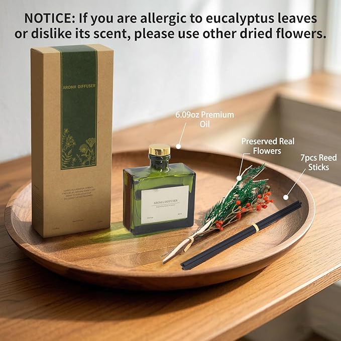 • Important Note: Contains real dried eucalyptus leaves and dried flowers . Please use other included dried flowers if you have an eucalyptus allergy or dislike its scent.