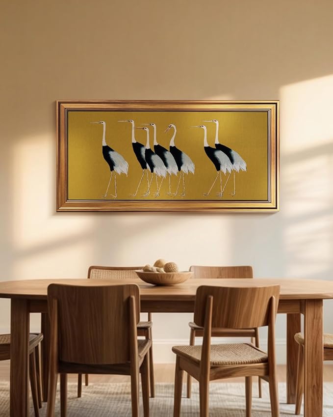 HUARCEY Gold Framed Vintage Wall Art for Living Room, Animals Painting Prints Shelf Decor for Kitchen, Aesthetic Bedroom Wall Art Decor, Christmas Gifts for Friends or Family (Seven Cranes 20"x40")