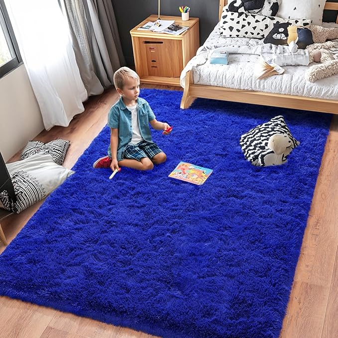 Rugs for Bedroom 4x6, Soft Shaggy Modern Shag Area Rug for Living Room, Upgrade Non-Slip Plush Fluffy Carpet for Kids Boys Girls Room Home Decor Aesthetic, Royal Blue