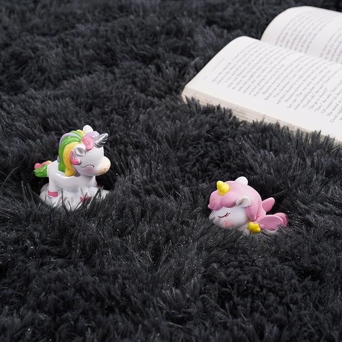 Rugs for Living Room 9x12, Soft Shaggy Modern Shag Area Rug for Bedroom, Upgrade Non-Slip Plush Fluffy Carpet for Kids Boys Girls Room Home Decor Aesthetic, Charcoal Gray