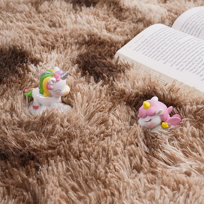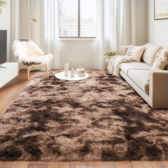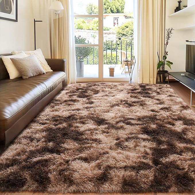Rugs for Living Room 8x10, Soft Shaggy Modern Shag Area Rug for Bedroom, Upgrade Non-Slip Plush Fluffy Carpet for Kids Boys Girls Room Home Decor Aesthetic, Tie-Dyed Brown