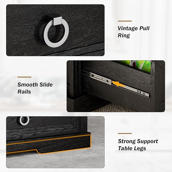 Rustic Coffee Table with Drawers 47 inch Living Room Tables with Storage, Wooden Center Table for Reading Playing Room Home Accent Table for Dining Room Apartment, Dark Oak Black